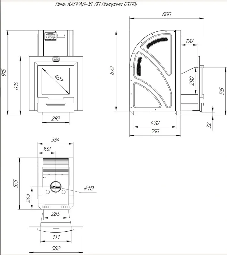Банная печь Каскад 18 ЛП Панорама 1.1