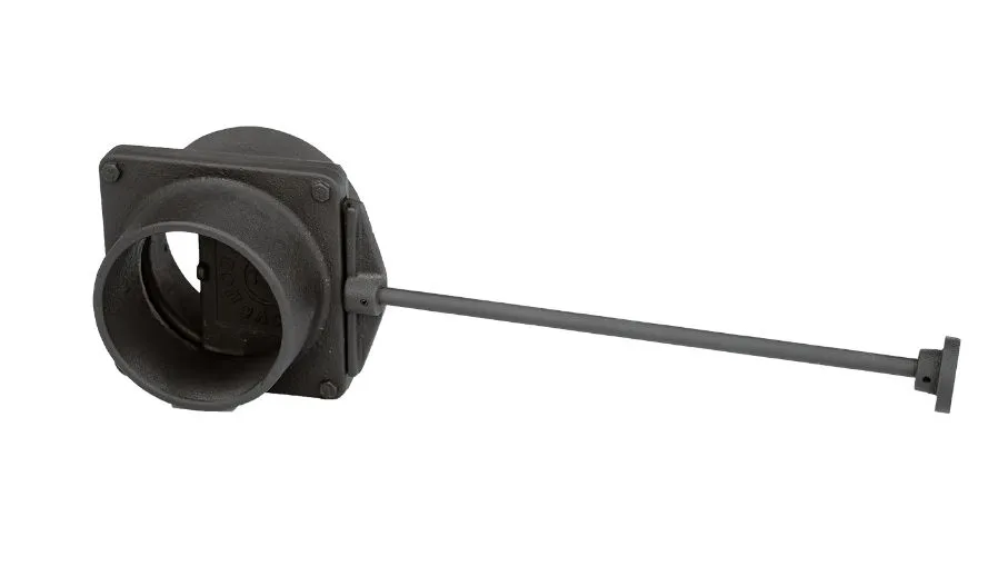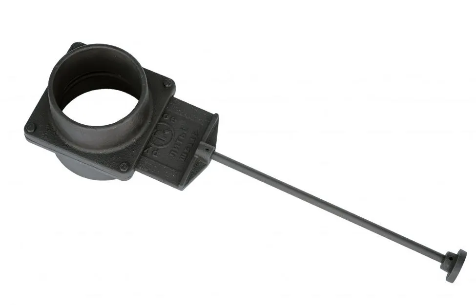 Ручка управления задвижкой имеет возможность выхода в топочное помещение (длина ручки 315 мм). Устанавливается на стартовые чугунные трубы «Сибирь», длиной 300 и 500 мм.