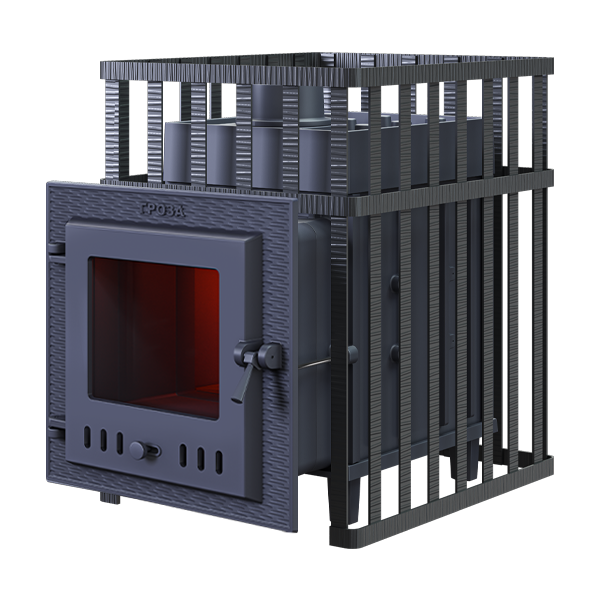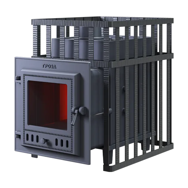 Чугунные банные печи ТМ «Гроза» в сетке - это современные печи, рассчитанные на малые и средние размеры парных. Печь имеет прочную сборную конструкцию, без резьбовых и сварных соединений, детали выполнены из легированного чугуна. Топка печей «Гроза» состоит из двух камер, разделенных пламегасителем. Радиаторные выступы каменки, направленные вглубь топки, увеличивают площадь контакта огня с каменкой и эффективность теплосъема.