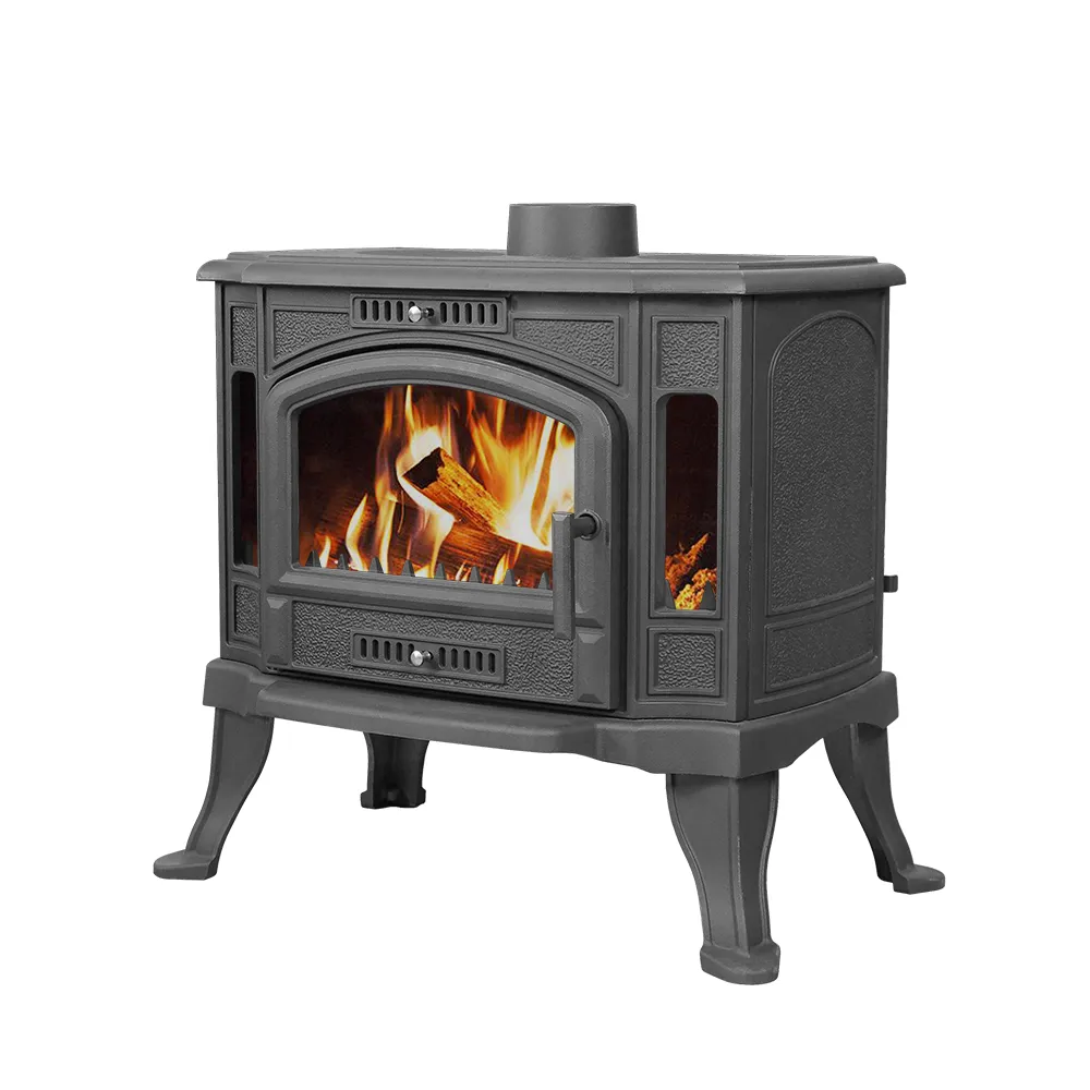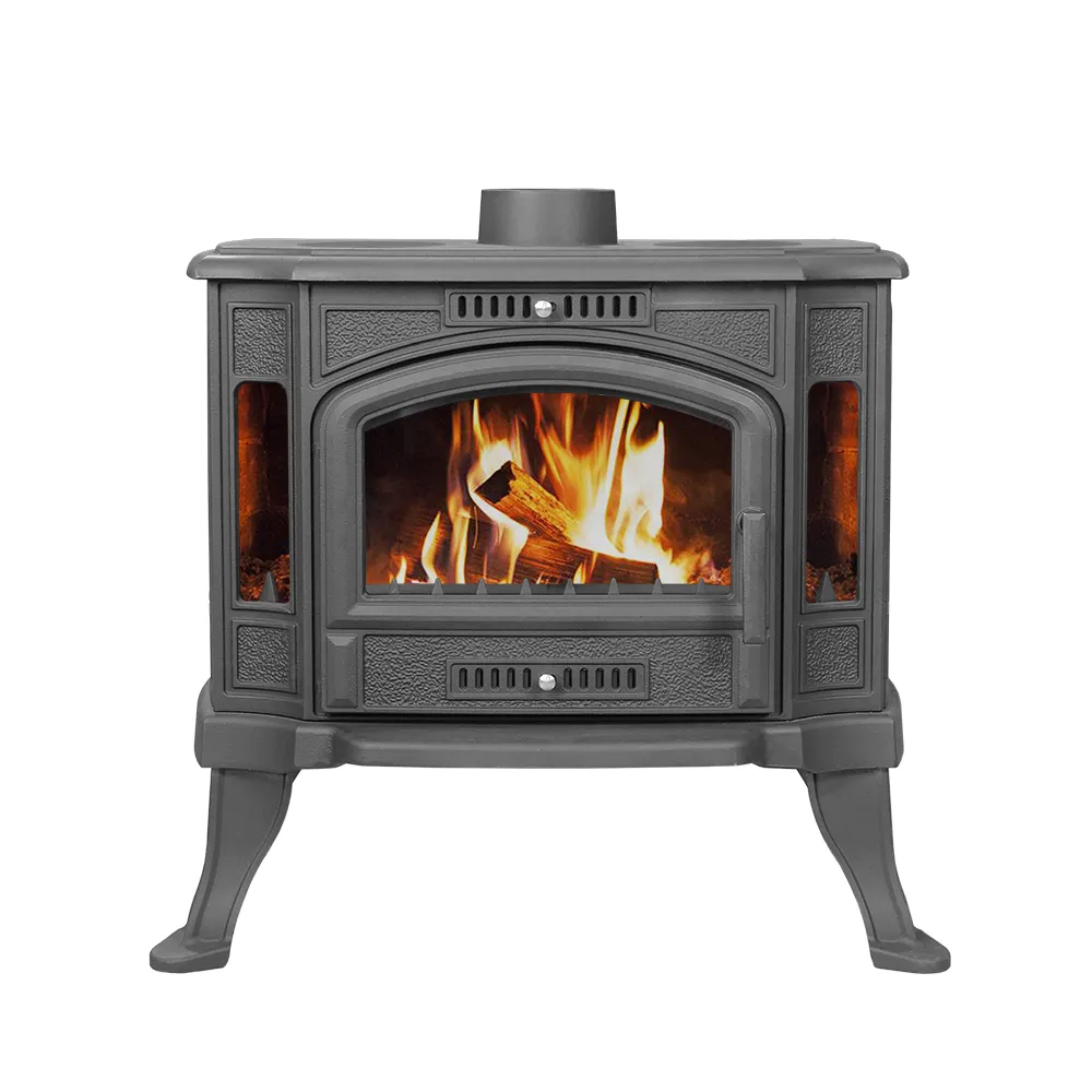 Камин изготовлен из высококачественного чугуна с двойными стенками; большое панорамное стекло;