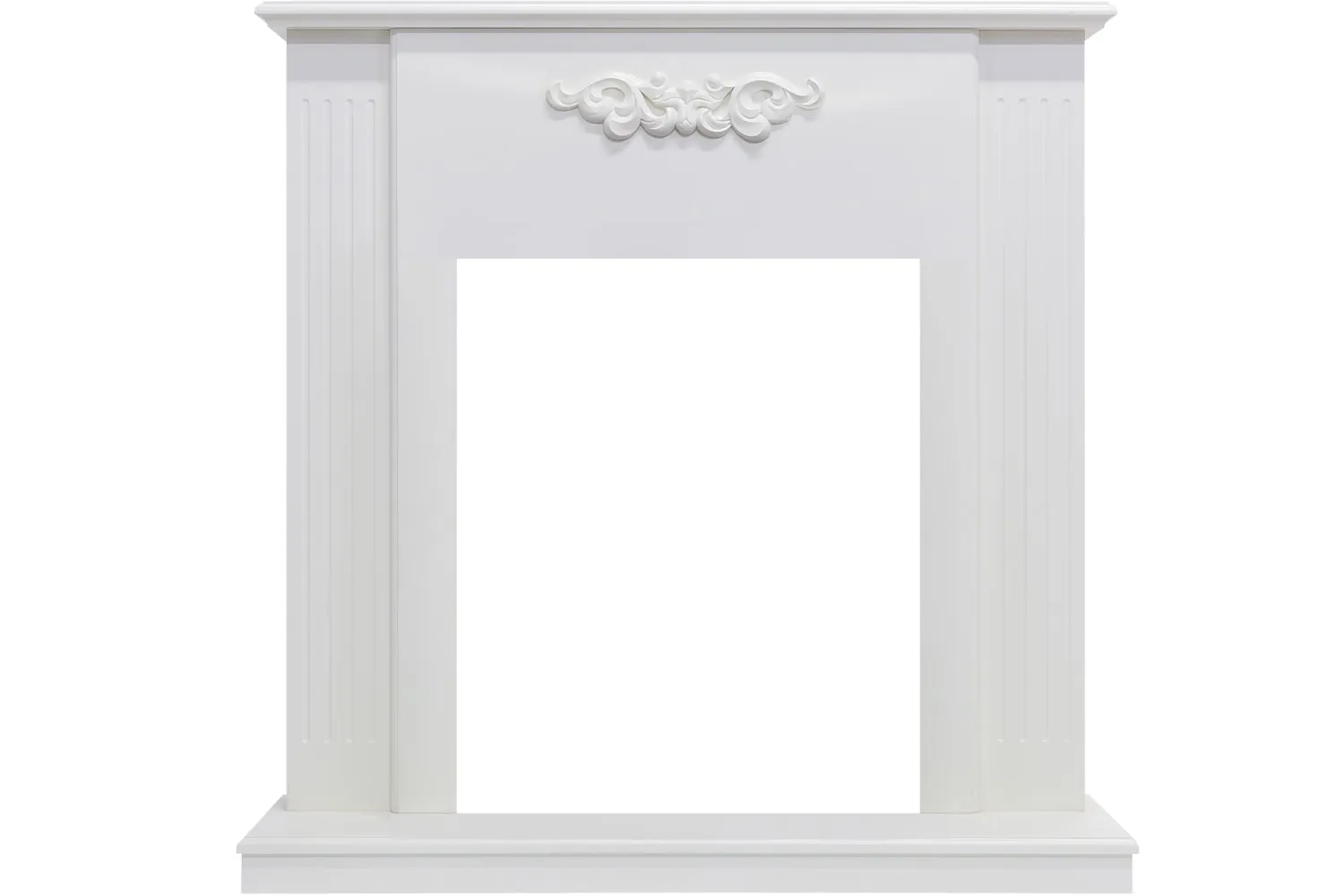 Деревянный портал Capri – классическая модель со строгим дизайном. Портал декорирован витыми узорами на фронтоне и резными колоннами по бокам – это сочетание придает ему оттенок античности. Белый цвет корпуса и выдающийся вперед постамент выгодно подчеркивают зону топки и игру пламени в очаге.