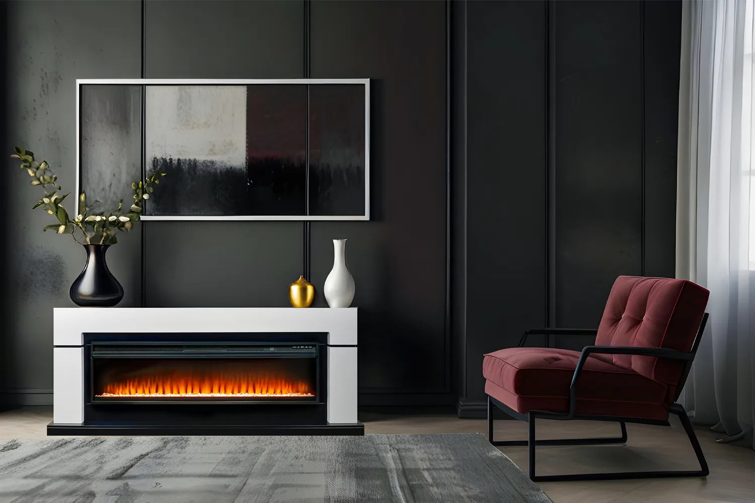 Для воссоздания иллюзии огня в очаге используются высокотехнологичные визуальные эффекты, светодиодные поленья в новом дизайне и звуковая имитация потрескивания дров.