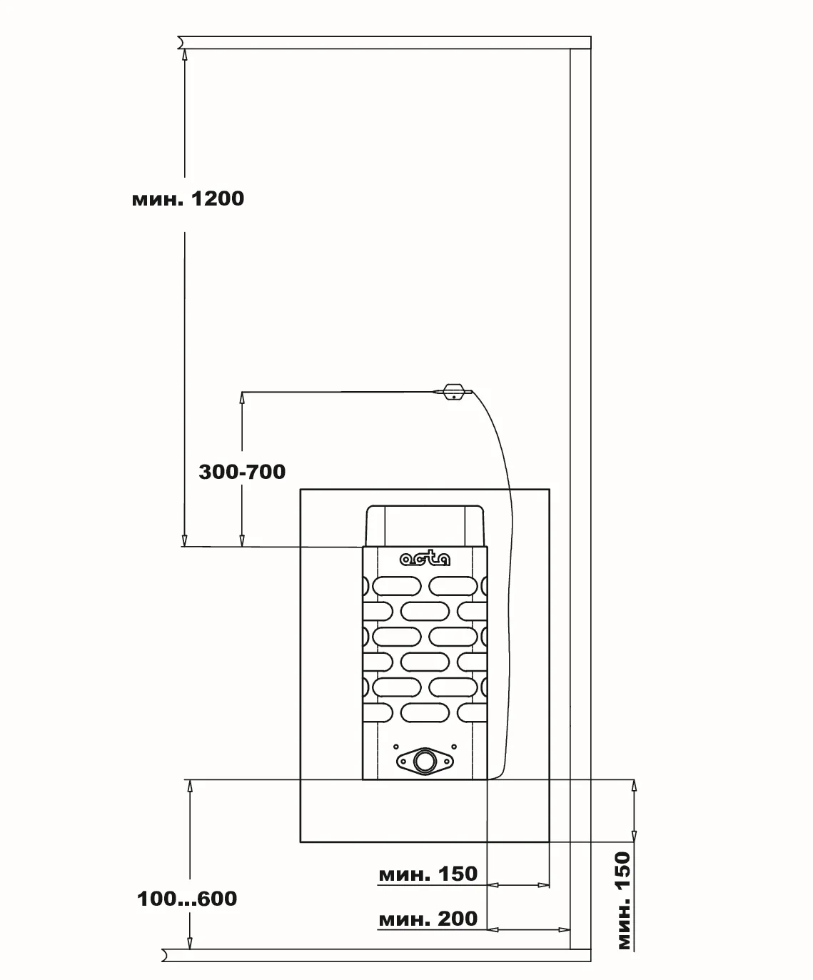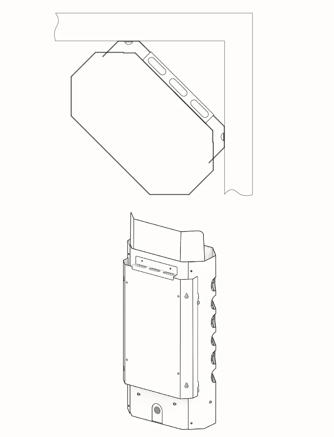 Электрокаменка устанавливается на регулируемые резьбовые опоры и крепиться к полу с помощью скоб.