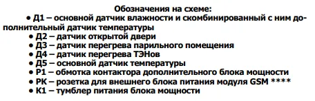 | Аварийное отключение силовой части (по перегреву помещения парилки свыше 110 ºС, обрыву основного датчика температуры) | Присутствует |