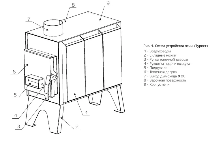 Печь "Турист" может использоваться как воздухогрейная мобильная печь, способная отопить временное мобильное жилье, а также как варочная плита, используемая для приготовления пищи.