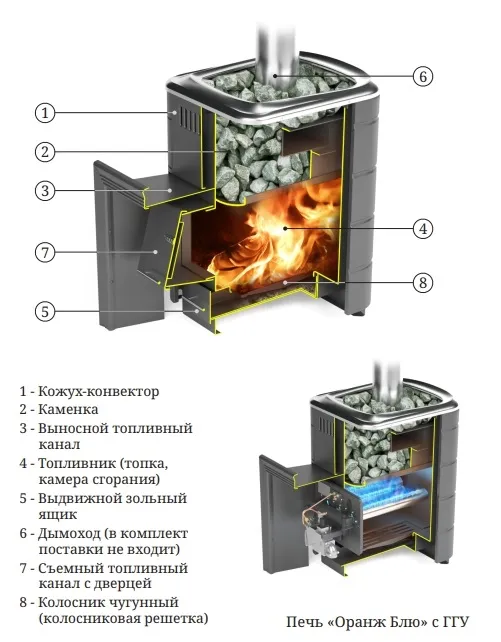 Банная печь газодровяная Оранж Блю Carbon антрацит