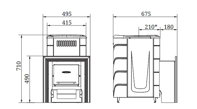 Топливник печи имеет объем более 33 литров и в него могут поместиться дрова с максимальной длиной около 40 см