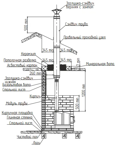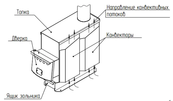 Удобный быстрый монтаж - лёгкий вес печи, не нужен фундамент. Компактный размер, легко транспортировать. Выход дымохода вверх