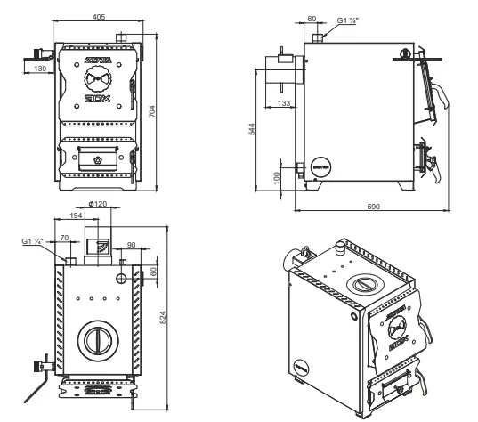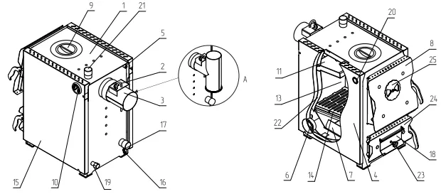 котел «Box» оборудован чугунной плитой со съемными поверхностями для более удобной загрузки угля и подогрева пищи