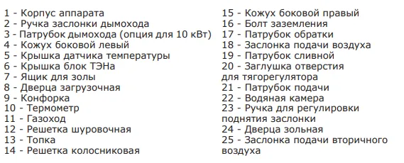 корпус котла под декоративной обшивкой изолирован бальзатовым картоном. Данная особенность снижает теплопотери водяной рубашки