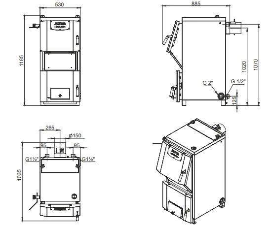 Котел оснащен системой подачи вторичного воздуха, установлен термометр, измеряющий температуру подачи воды