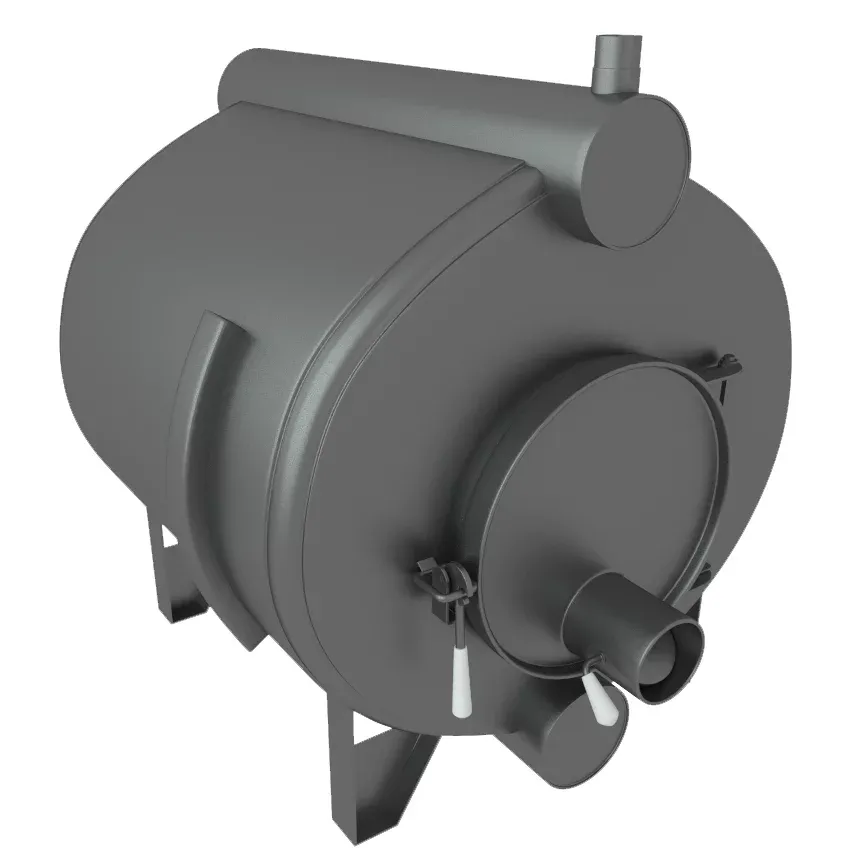 Работа котла регулируется двумя заслонками. Одна управляет притоком воздуха, вторая — отводом дымовых газов. Это позволяет контролировать интенсивность горения топлива. При полном открытии заслонок достигается активное горение и быстрый прогрев помещения за 40–50 минут. Если приток воздуха ограничен, топливо начинает медленно тлеть, обеспечивая тепло в течение 6–8 часов.