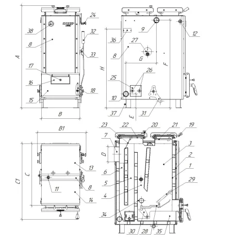 Отопительный котел Куппер КАРБО-12 (2.0) - относится к серии шахтных котлов, расчитаных на использование угля в качестве основного топлива. Но, конструктивные особенности отопительных котлов линейки Куппер КАРБО (2.0) позволяют эксплуатировать их с разными видами топлива.