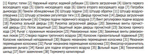 Помимо угля возможно периодическое применение кокса, дров и брикетов, а при установке газовой или пеллетной горелки - полный перед на газовое и пеллетное топливо.