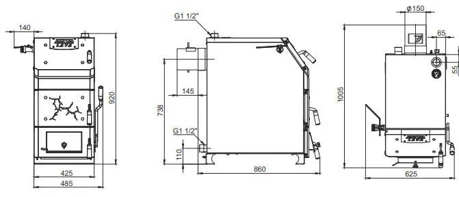 В аппарате предусмотрена возможность установки нагревательного элемента (блока ТЭН). Котёл должен устанавливаться в закрытом помещении, оборудованном приточно-вытяжной вентиляцией. Система вентиляции должна учитывать индивидуальные особенности помещения котельной и обеспечивать нормальную работу аппарата. Главное отличие шуровочный механизм из нержавеющей стали AISI321 для очистки колосников позволяет использовать спекающиеся сорта угля и угли с высокой зольностью