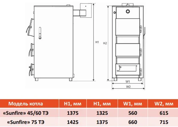 Устройство и размеры котла для отопления Sunfire 45 кВт
