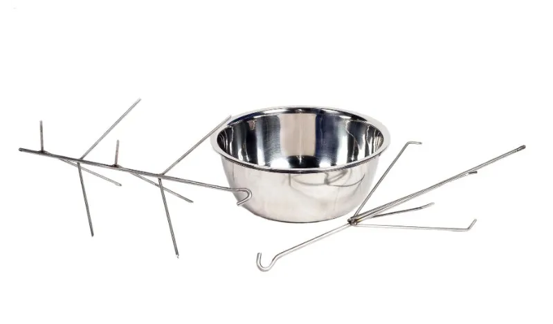 Набор универсальный состоит из нержавеющей тарелки, курницы и ёлочки.