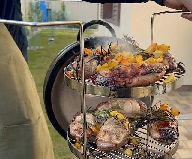 Решётка-гриль из нержавеющей стали станет вашим надёжным помощником в приготовлении блюд на тандыре. Прочная и удобная, имеющая 3 уровня на разной высоте, она позволит вам не только разнообразить ваше тандырное меню, но и готовить сразу несколько блюд одновременно!