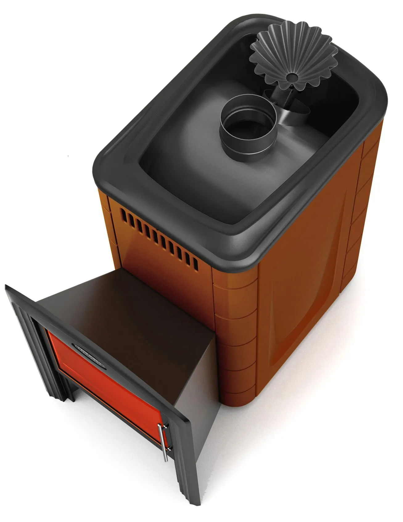 Модификация с закрытой каменкой, экраном Витра 42 см, цвет терракота
