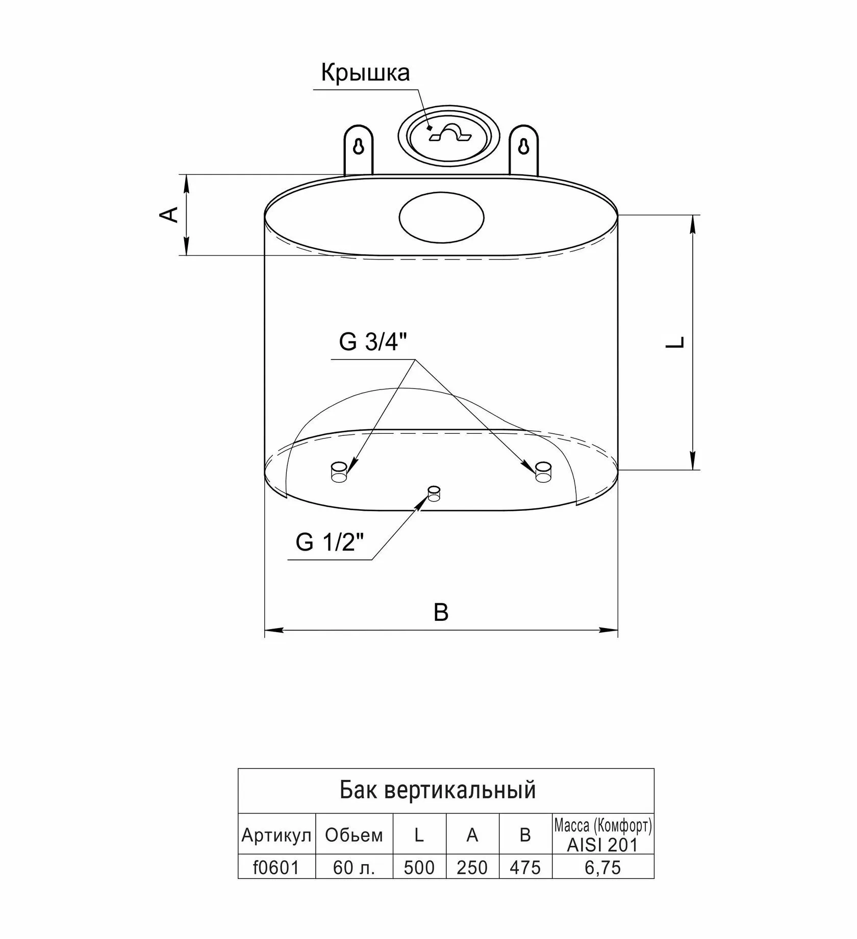 Бак "Усмань" (AISI 201/1.0) для теплообменника вертикальный эллипс 60л