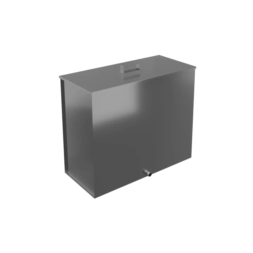 Конструкция бака состоит из корпуса и крышки. Обечайка и нижняя стенка корпуса выполнены из стали AISI 201 толщиной 1 мм, а крышка — из стали AISI 430 толщиной 0,8 мм. На боковой стенке расположен сливной штуцер с наружной трубной резьбой 1/2 дюйма для удобного слива воды.