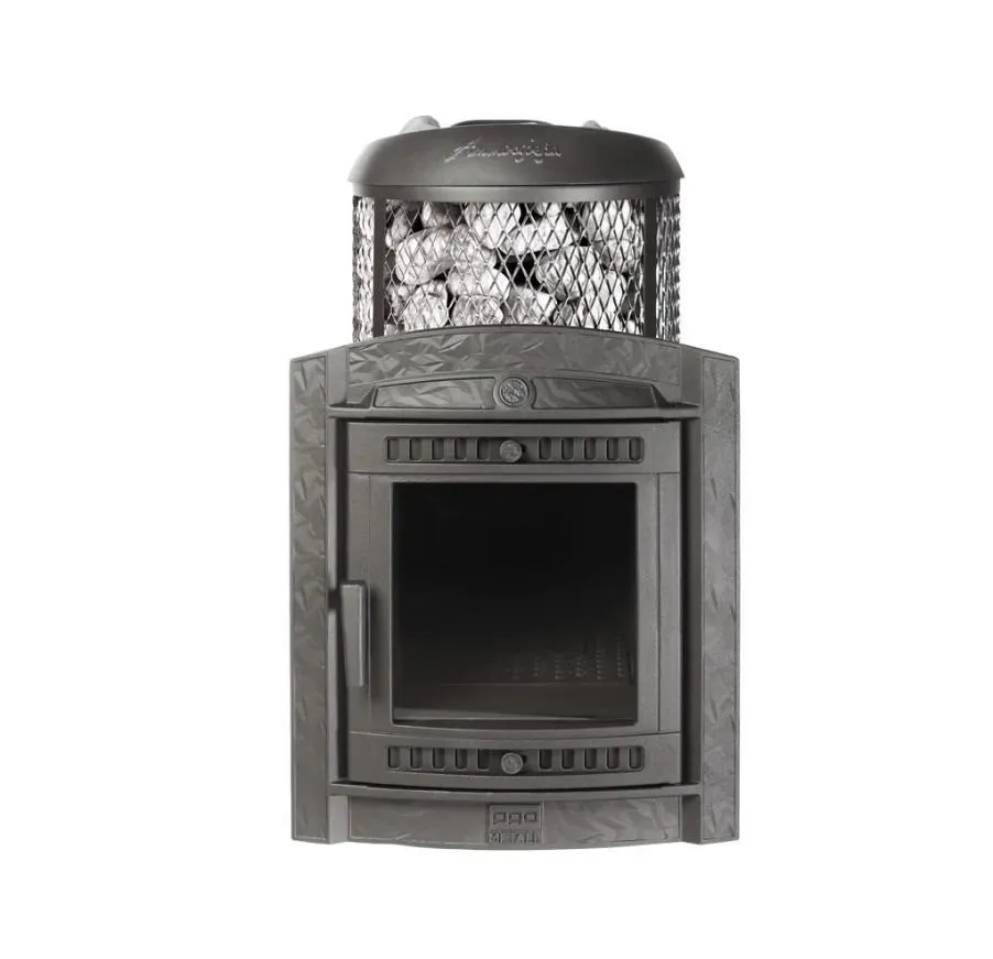 Чугунная банная печь Атмосфера L комбинированная сетка-ламель «Змеевик» наборный