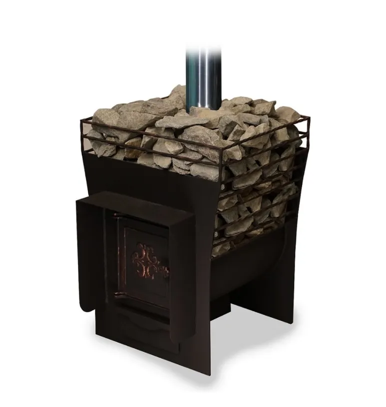 Каменка вмещает до 140 кг камней, которые при нагреве излучают мягкое тепло, а если полить их водой обеспечат мелкодисперсный пар