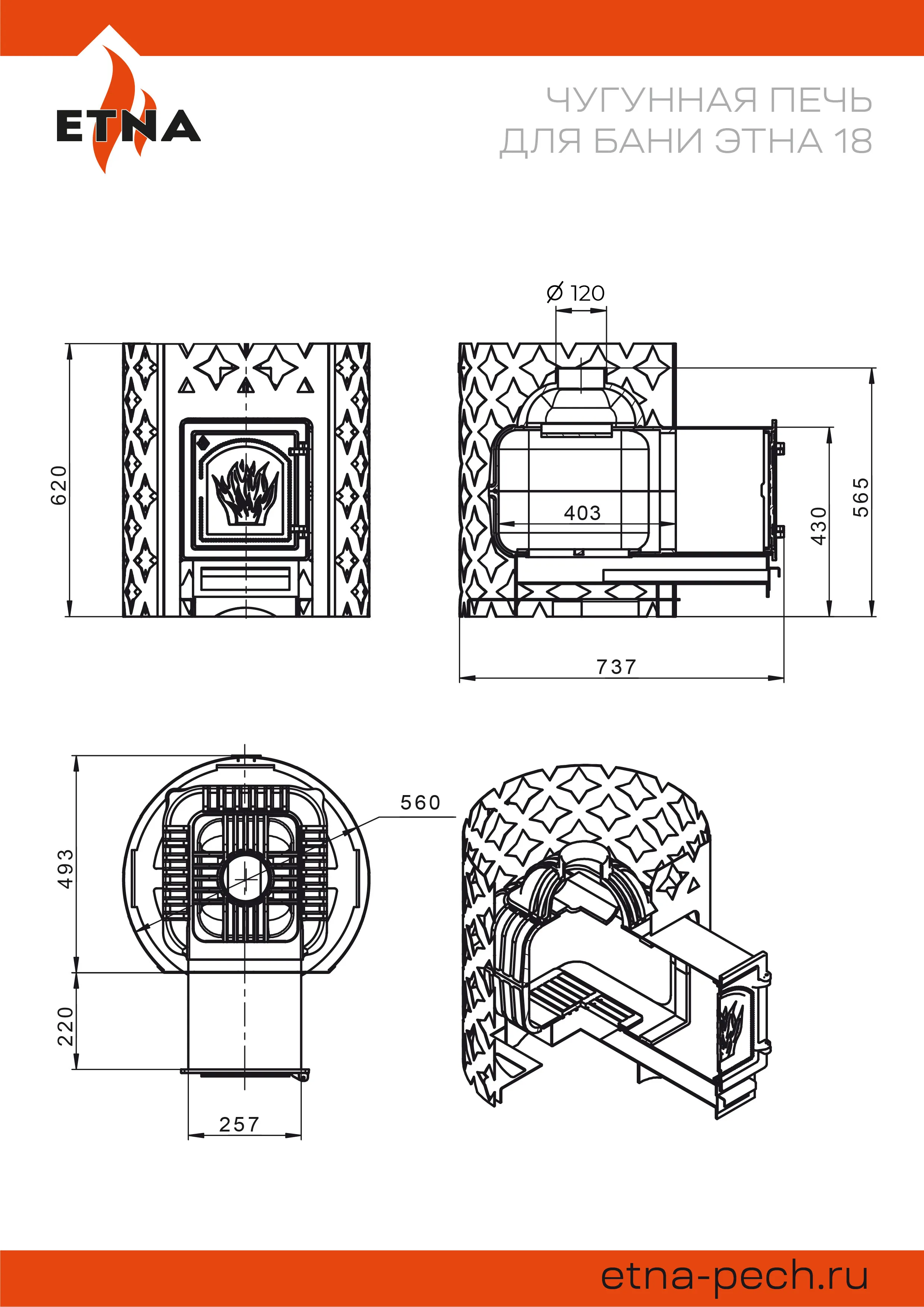 Основные характеристики чугунной банной печи ЭТНА 18 (ДТ-4)