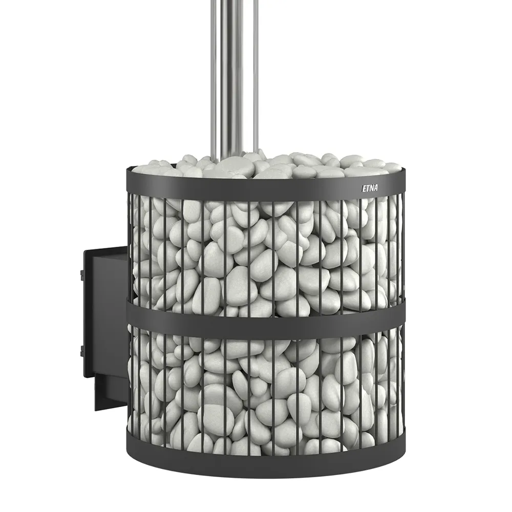 Регулировка скорости горения дров осуществляется за счёт изменения положения зольного ящика, который выполняет функции заслонки для воздушного потока. При закрытом ящике интенсивность поступления воздуха в топку минимальная, при открытом – максимальная. Топочный тоннель из особо прочной стали предназначен для вывода топочной дверцы в смежное с парилкой помещение. Длина тоннеля достаточна для прохождения через стену толщиной 20 сантиметров. Печь ЭТНА 24 (ДТ-4С) оснащается верхним патрубком для подключения дымохода. На патрубок можно установить одноконтурную трубу или чугунный шибер диаметром 115 мм.
