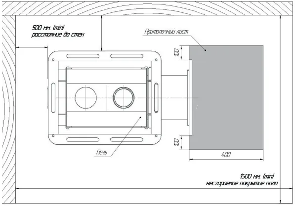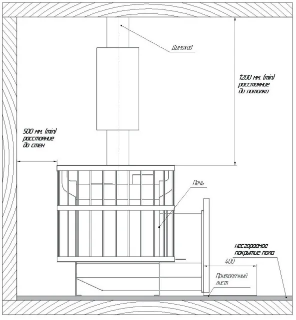 Рисунок 4. Безопасные расстояния от стен при установке банной печи