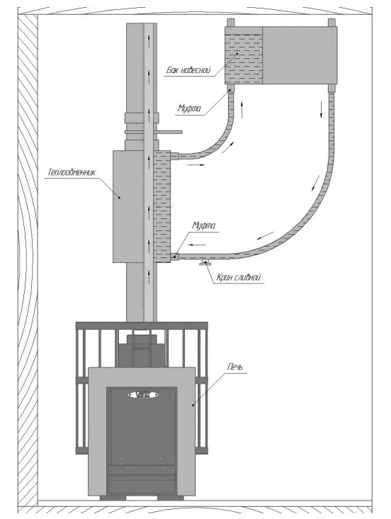 Рисунок 2. подключение бака для горячей воды к банной печи