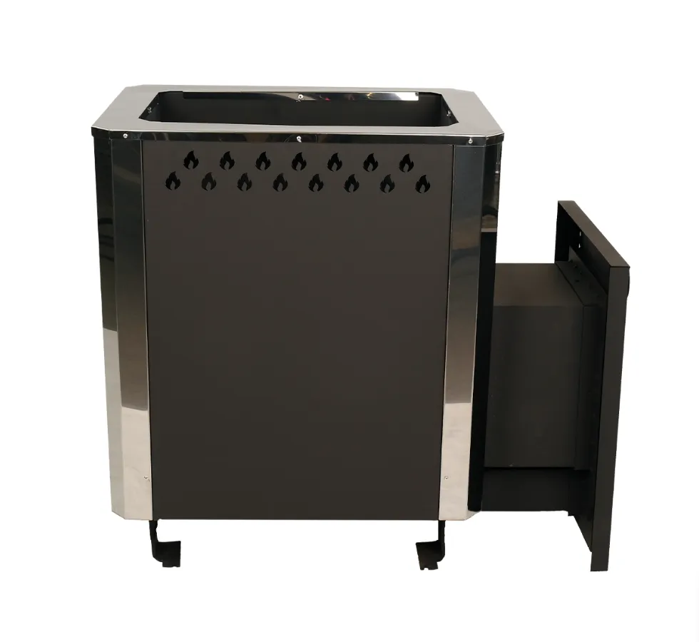 Банная печь «Грация» на парную до 15 м.куб. и полностью сделана из котловой стали раскроенной на лазерном станке. Котловую сталь почти не ведет, а теплофизические свойства выше чем у обычного металла. Ребра жесткости исключают деформацию топки при высоких температурах даже, если вы зальете ее водой.