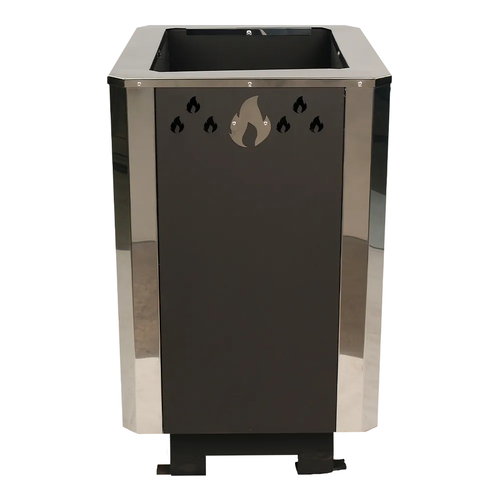Банная печь «Грация» на парную до 20 м.куб. и полностью сделана из котловой стали, облицованная нержавейкой, раскроенной на лазерном станке. Котловую сталь почти не ведет, а теплофизические свойства выше чем у обычного металла. Ребра жесткости исключают деформацию топки при высоких температурах даже, если вы зальете ее водой.