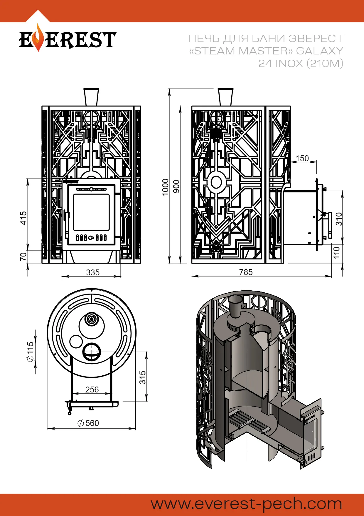 Печь для бани Эверест "Steam Master" GALAXY 24 INOX (210М) GOLD