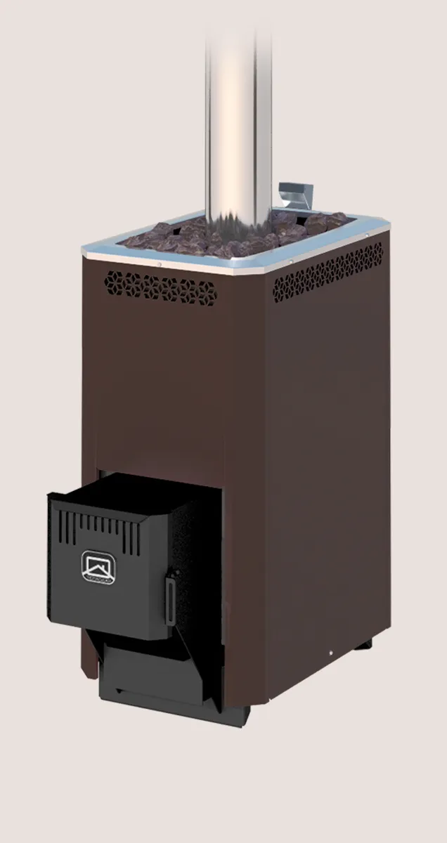 В верхней части топки расположена открытая каменка. Внутри топки располагается закрытая каменка, которая позволяет нагревать камни до высочайших температур и получать легкий мелкодисперсный пар.