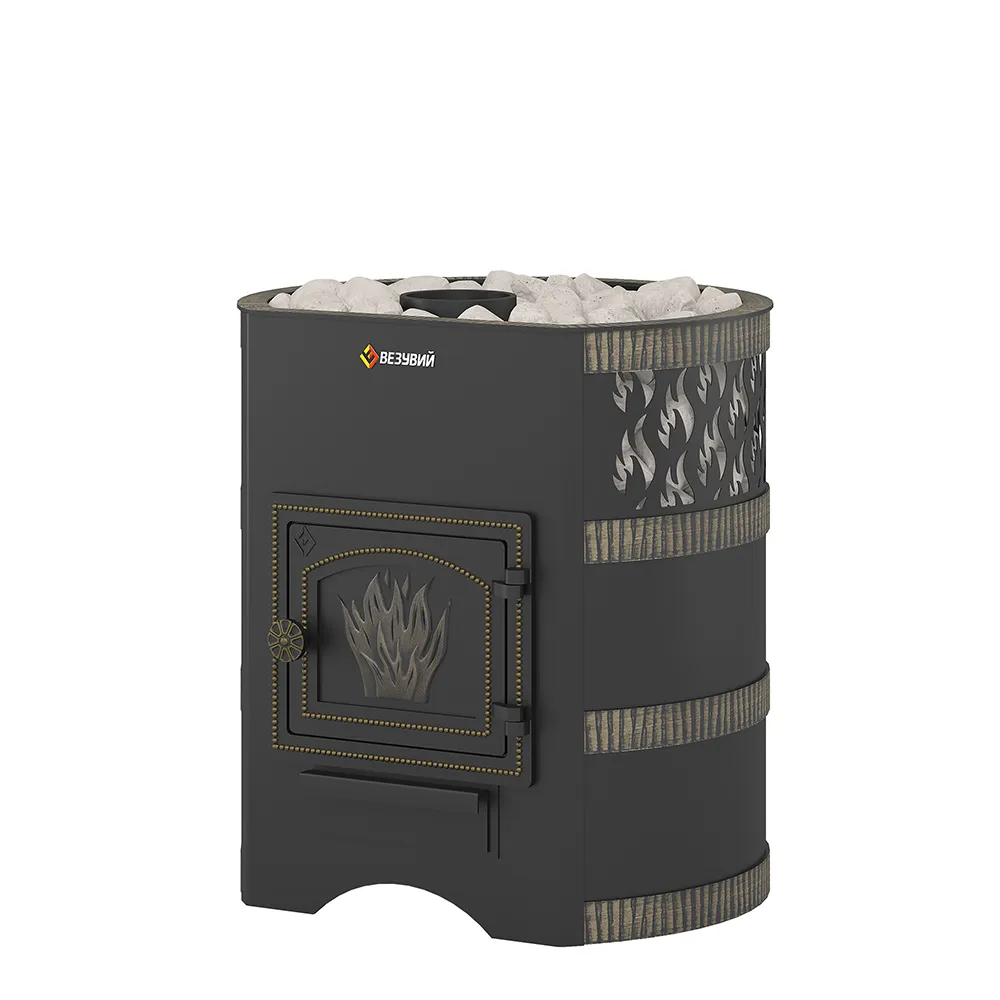 Стальная банная печь серии Лава усовершенствованной конструкции работает на дровах и предназначена для нагрева пространства парной и получения пара. Печь Везувий Лава 22 (ДТ-4) б/в 2022 рассчитана на объем парной 6-14 кубометров. Топка печи изготовлена из особо прочной котловой стали марки 09Г2С. Толщина верхней и задней части 6 мм, толщина боковых стенок 4 мм. Топка имеет скошенные углы в нижней части боковых стенок топки. Такая конструкция облегчает уход за топкой, предотвращает высокую тепловую нагрузку на боковые стенки печи и обеспечивает дополнительную жёсткость стенок. Вместе с тем, данная конструкция стенок предполагает направление дров ближе к колосниковой решётке, что обеспечивает полное прогорание топлива.