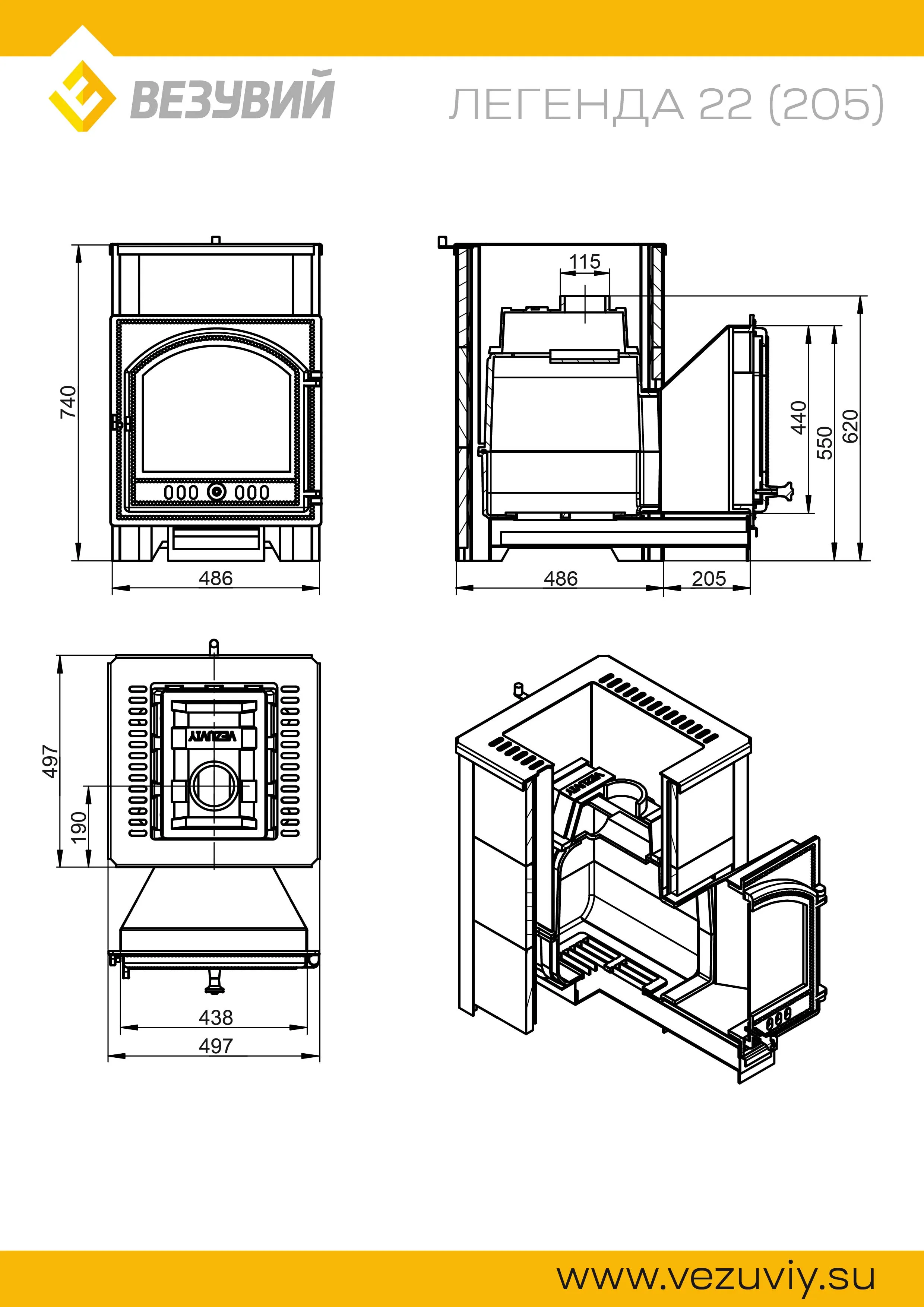 Печь изготовлена из жаростойкого чугуна (ГОСТ 1412-85), топка печи абсолютно герметична
