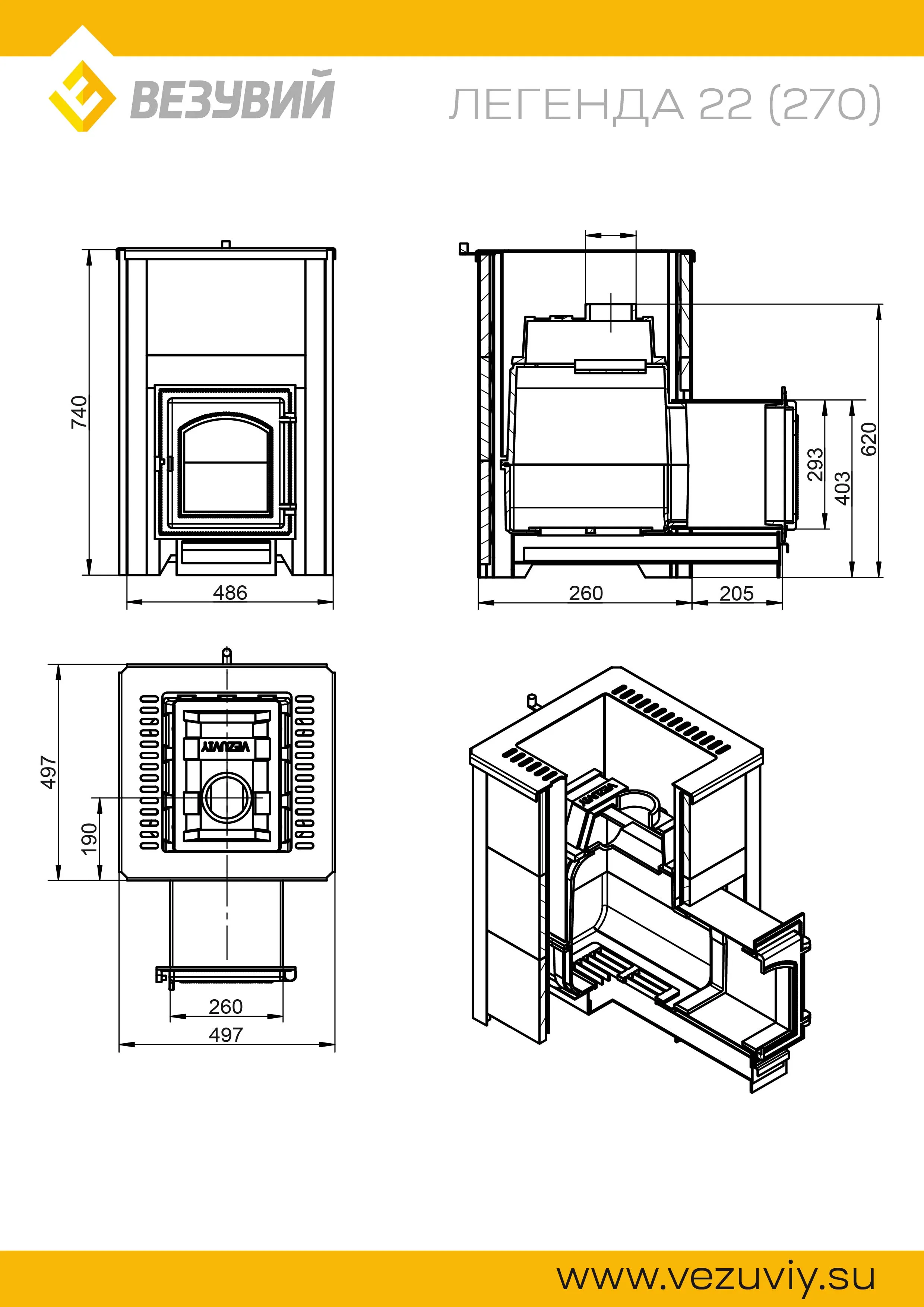 Печь изготовлена из жаростойкого чугуна (ГОСТ 1412-85), топка печи абсолютно герметична