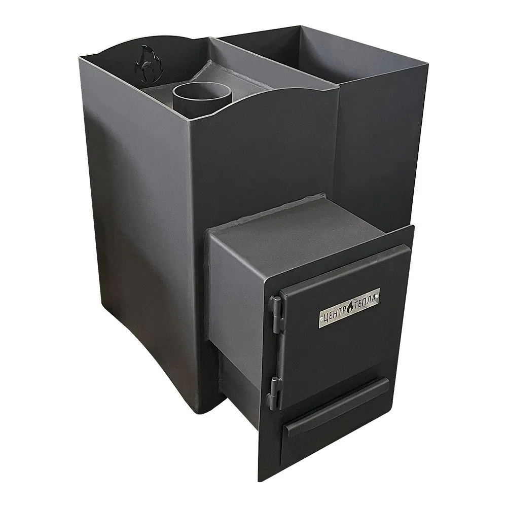 Открытая каменка рассчитана на до 50 кг камней, что гарантирует мягкий и интенсивный пар. Печь оснащена металлической дверцей и стандартным дымоходом диаметром 115 мм. Легко устанавливается, возможна топка из смежного помещения. Вес изделия — всего 63 кг.