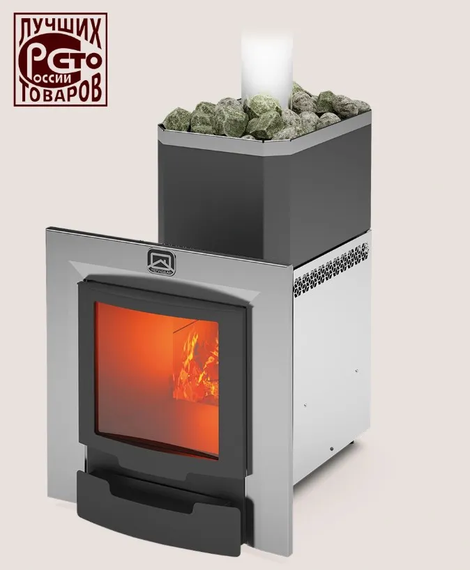 Особая конструкция нагревательных поверхностей обеспечивает умеренный нагрев парной до 90°С, в сочетании с отличным прогревом большой массы камней позволяет получить настоящую печь для русской бани. Каминная дверца с жаростойким стеклом SCHOT ROBAX для наблюдения за огнем в комнате отдыха.