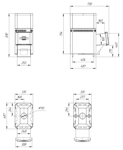 Топка печи Русь-12 Л Профи изготовлена из жаростойкой нержавеющей стали толщиной 4 мм с содержанием хрома до 17%. Элементы дымохода и камни не входят в комплект печи и приобретаются отдельно.
