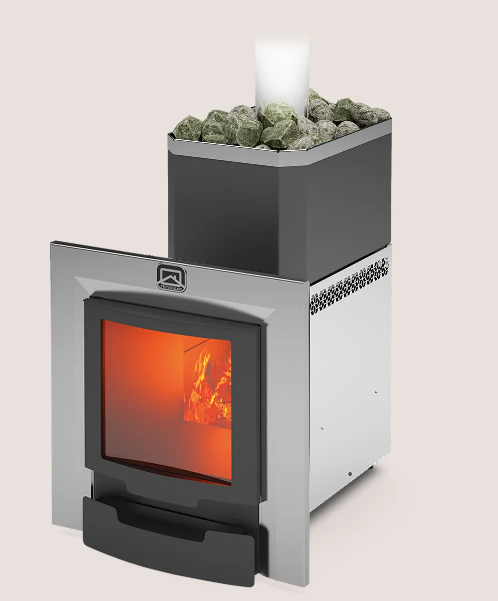 Особая конструкция нагревательных поверхностей обеспечивает умеренный нагрев парной до 90°С, в сочетании с отличным прогревом большой массы камней позволяет получить настоящую печь для русской бани. Каминная дверца с жаростойким стеклом SCHOT ROBAX для наблюдения за огнем в комнате отдыха.