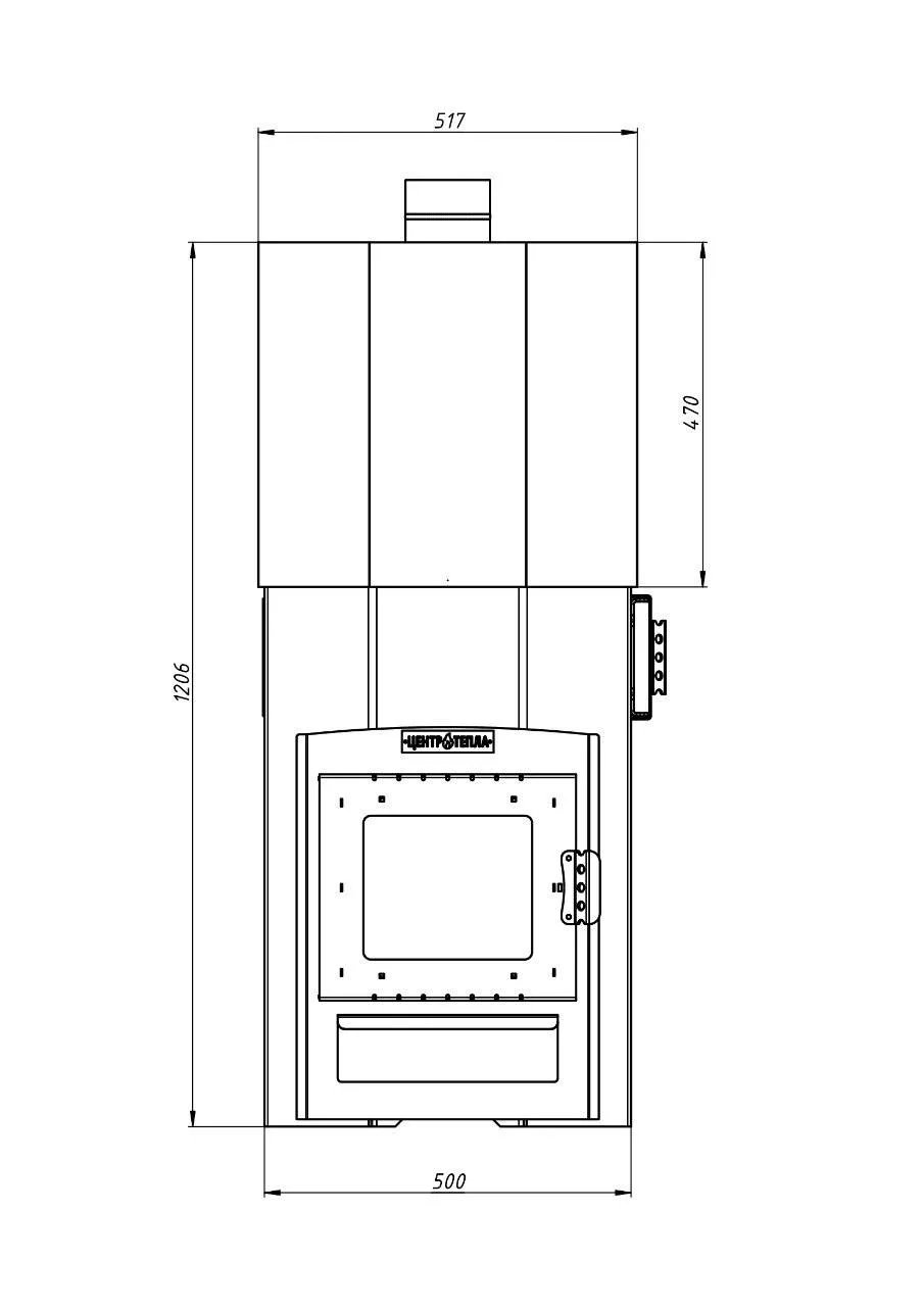 Выносной топливный канал позволяет топить из смежного помещения.