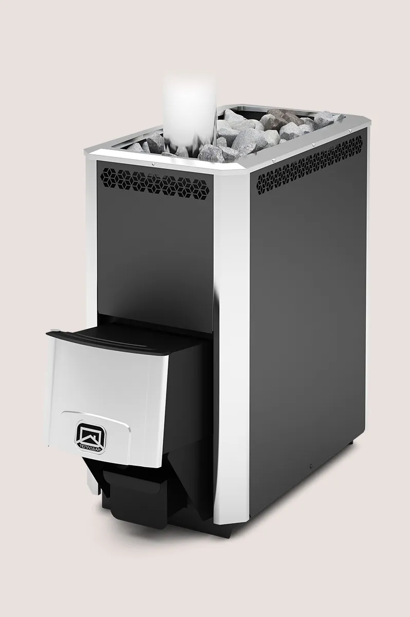 Дно каменки из жаростойкой нержавеющей стали с содержанием хрома от 17% для снижения риска деформации каменки дополнительно усилено несущим элементом. Все наружные поверхности печи окрашены двумя слоями жаростойкой кремнийорганической эмали, сохраняющей свойства при температуре 600°C.