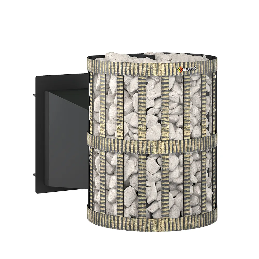 Чугунная дверь при нагревании не деформируется, сохраняет свою форму при остывании и предотвращает попадание продуктов горения на пол перед топкой. Печи Везувий Скиф оснащаются сетками для камней. Сетки сделаны из кованой стальной ленты шириной 40 мм. В сетки по всей высоте укладываются камни для бани, обеспечивая большой объём заклада и длительное удержание тепла после прогрева каменки.