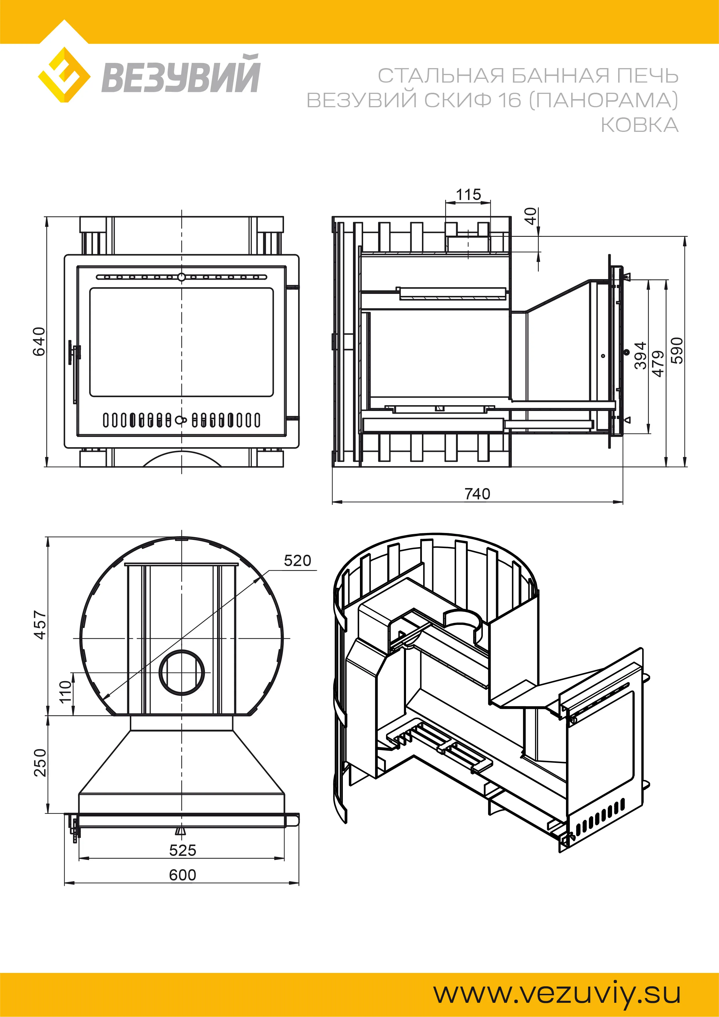 Основные характеристики печи для бани Скиф Ковка 16 Панорама М 2022