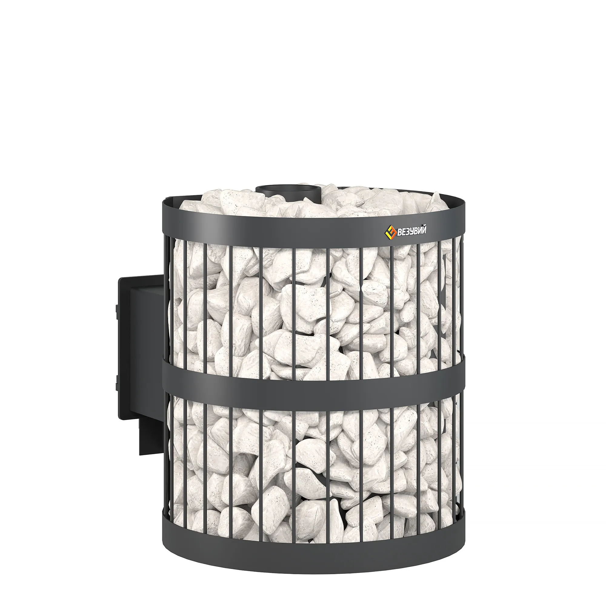 Сетка-конвектор вмещающий до 110 кг камней обеспечивает активное движение воздуха и прогрев расчётного объёма парилки за минимальное время. Закладом камней в кожух организуют открытую каменку для получения плотного пара.