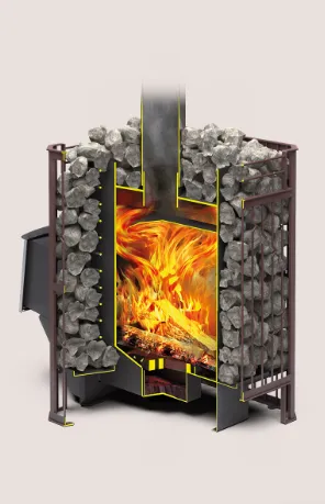 С большой закладки камней можно получить много легкого пара, а технологичная топка обеспечит динамичный нагрев парной.
