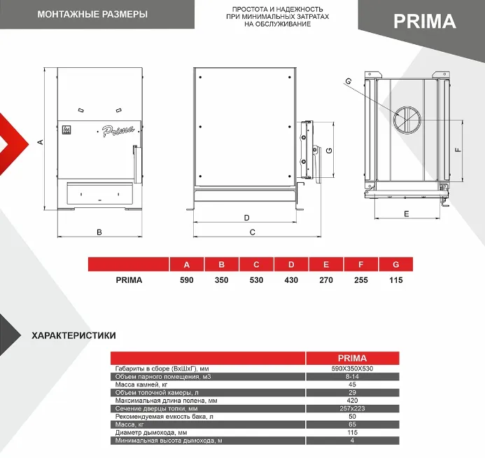 Характеристики Печь-каменки PRIMA