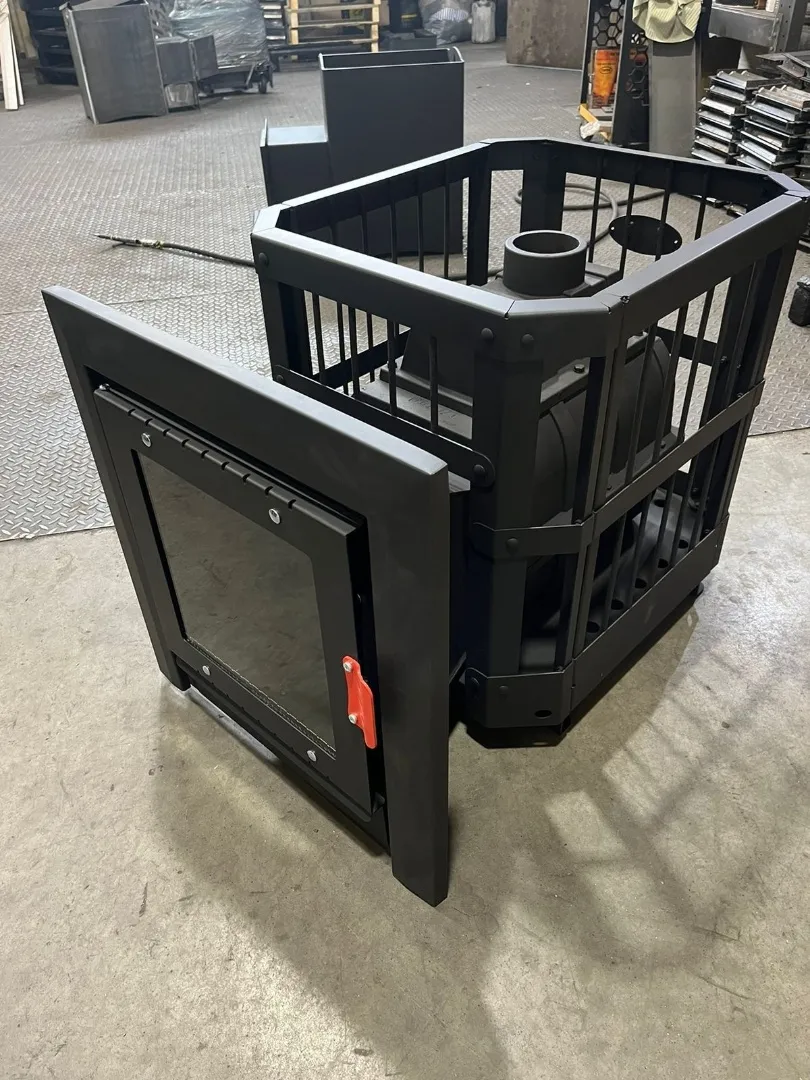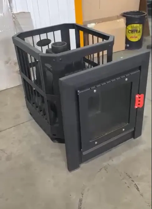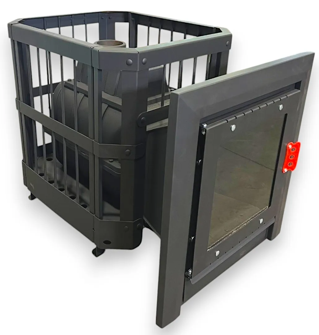 Банная печь чугунная ТПБ-2/2 Дверка Кижи со стеклом 28 куб.